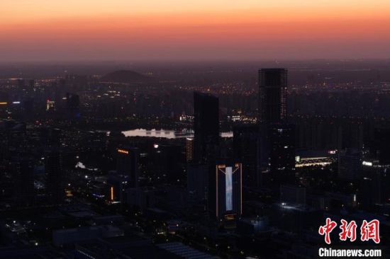 安徽合肥:日落時(shí)現(xiàn)火燒云 晚霞映紅天空